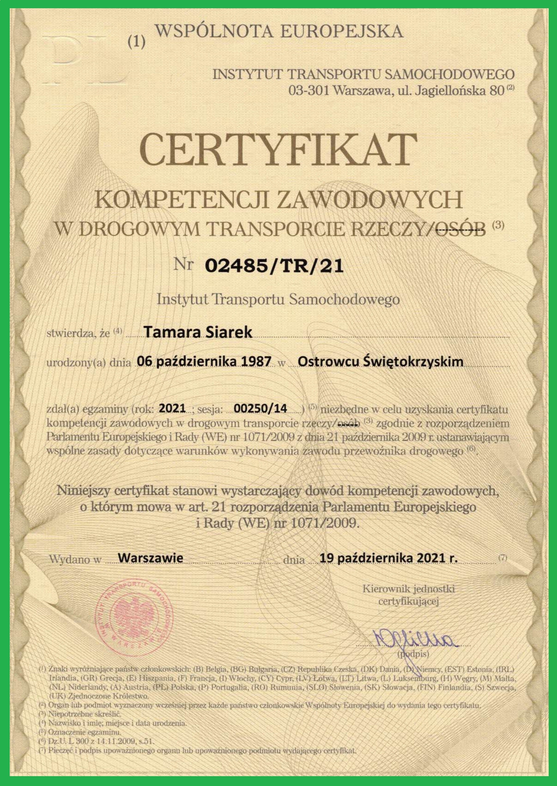 Licencje oraz certyfikat do wglądu dla Państwa.
